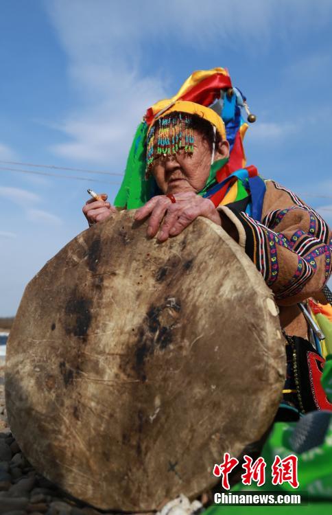 图为中国鄂伦春族唯一的萨满关扣尼。中新社发 魏来 摄