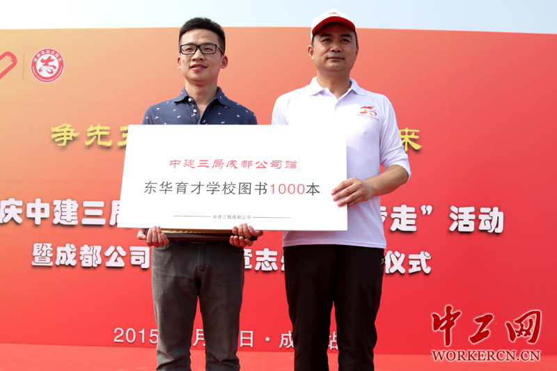 记者了解到,健步走活动是中建三局成都公司“六比一创”劳动竞赛启幕的重要环节。当天该公司还与成都一所农民工子弟学校建立对口帮扶合作关系,定向捐赠图书1000册,并约定公司志愿者服务队持续面向该校开展支教、捐赠和文化活动。
