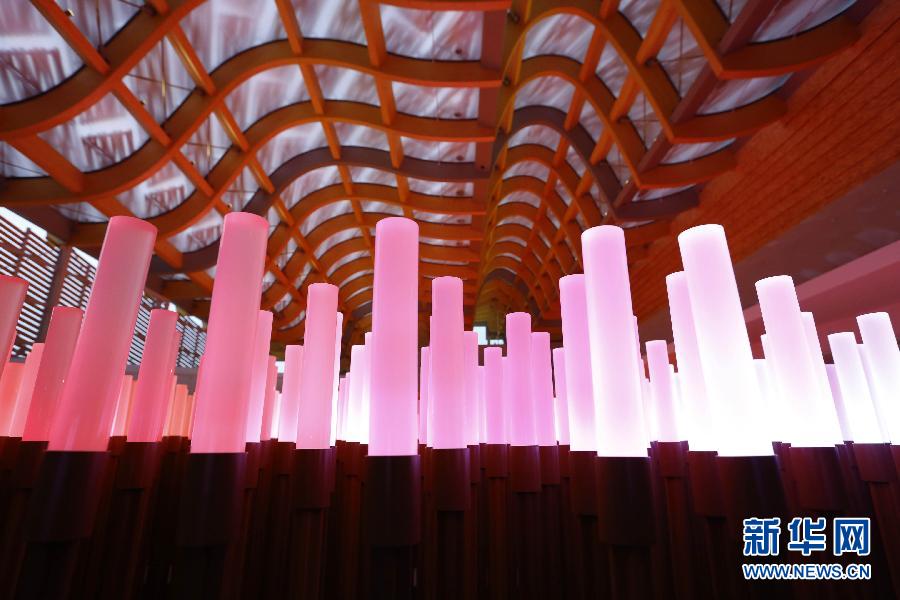 这是4月29日拍摄的意大利米兰世博园中国馆内的人工“麦穗”LED灯。