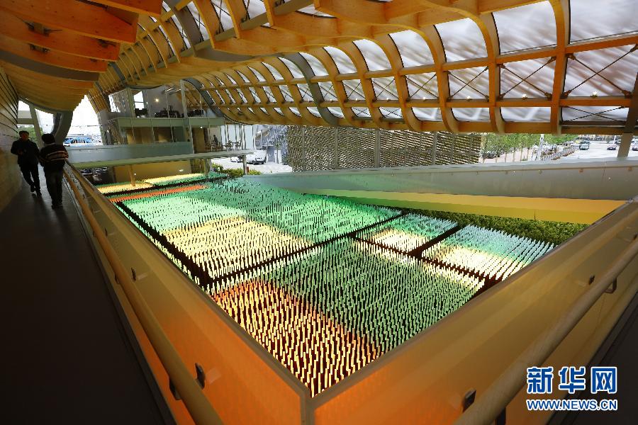 这是在意大利米兰世博园中国馆内拍摄的人工“麦穗”LED灯形成的农田图案(4月29日摄)。