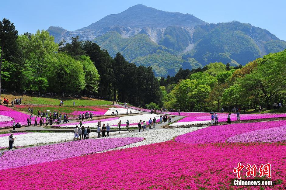 4月29日消息,短暂的樱花季节过后,日本的“樱花经济”仍在持续。一种在日本被称为“芝樱”(草地樱花之意)的丛生草本花卉,经刻意集中培植,成为吸引日本民众和各方游客扎堆前往观赏的又一特色景致。图为日本埼玉县内的一处“芝樱”观赏点,在“黄金周”即将来临之际连日吸引众多赏花人。中新社发 王健 摄