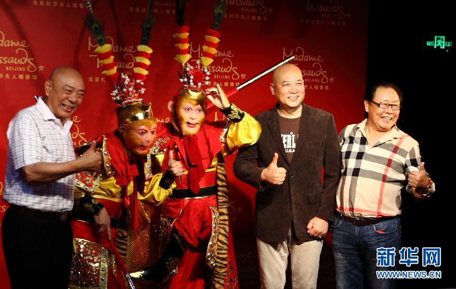 4月29日,在北京杜莎夫人蜡像馆六小龄童版“美猴王”揭幕仪式上,86版《西游记》师徒四人扮演者迟重瑞(右二)、六小龄童(右三)、马德华(右一)、刘大刚(左一)齐聚一堂。当日,六小龄童版“美猴王”蜡像入驻北京杜莎夫人蜡像馆。 新华社发(魏松 摄)