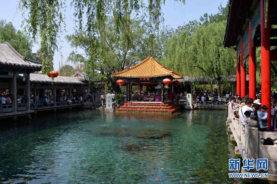 众多游客在参观济南趵突泉(5月1日摄)。山东省旅游局数据显示,“五一”小长假期间,山东共接待游客2809.2万人次,旅游综合收入211.7亿元,同比增长均超10%。新华社记者 朱峥 摄