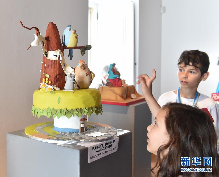 5月3日,在葡萄牙奥比杜什,两名儿童参观巧克力雕塑。第13届奥比杜什国际巧克力节3日在葡萄牙中部历史名城奥比杜什落下帷幕,各式栩栩如生、色香俱全的巧克力雕塑,引得参观者惊叹不已。新华社记者张立云摄