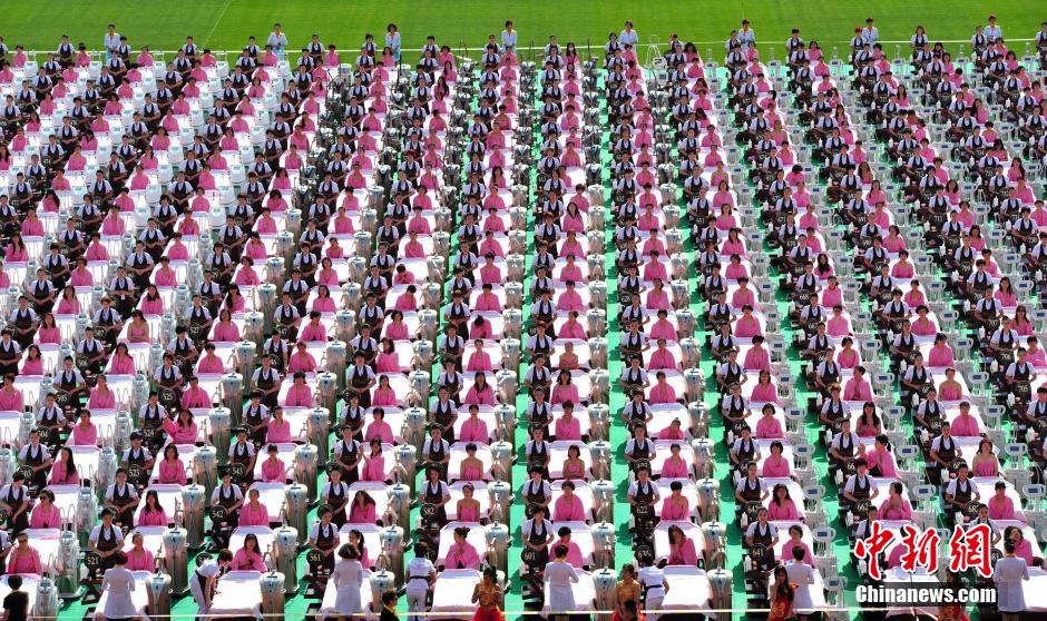 5月4日,在济南奥体中心足球场上,1000名美容师将为1000位泉城爱美女士免费做面部护理。创造了最多人在同一地点,同时做美容的吉尼斯世界纪录。“优雅女神”赵雅芝、“台湾第一美女”萧蔷现场见证吉尼斯纪录诞生。 中新社发 张勇 摄