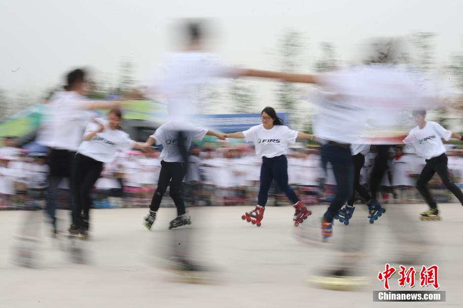 5月4日,轮滑爱好者在南京鱼嘴湿地公园内表演轮滑舞。 中新社发 泱波 摄