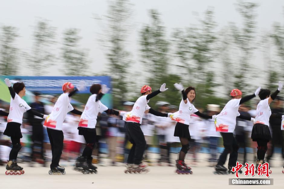 5月4日,轮滑爱好者在南京鱼嘴湿地公园内“刷街”。中新社发 泱波 摄