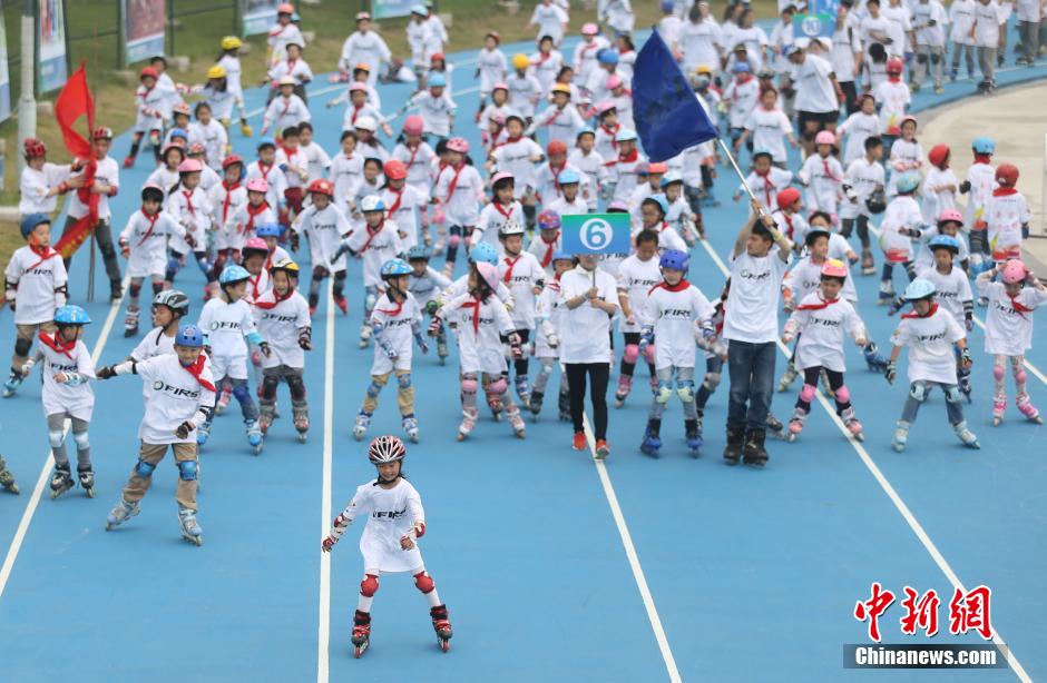 5月4日,小朋友们在南京鱼嘴湿地公园内“刷街”。 中新社发 泱波 摄