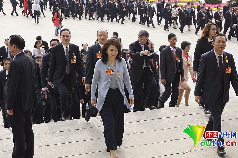 获得“全国劳动模范”荣誉称号的格力电器董事长兼总裁董明珠走进人民大会堂。中国青年网记者 李正穹 摄