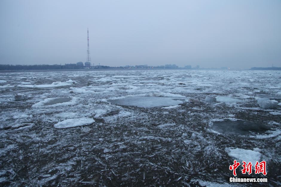 4月29日,中俄界江黑龙江流域上游大量冰排顺江倾泻而下进入黑河段,场面壮观,黑河沿江全面开江,比去年推迟一周。据了解,黑河口岸与俄罗斯布拉戈维申斯克市口岸今年夏季明水期客运货运预计5月初可望开航通关。图为中俄界江黑龙江黑河段现冰排全面开江。中新社发 黑河张辉 摄