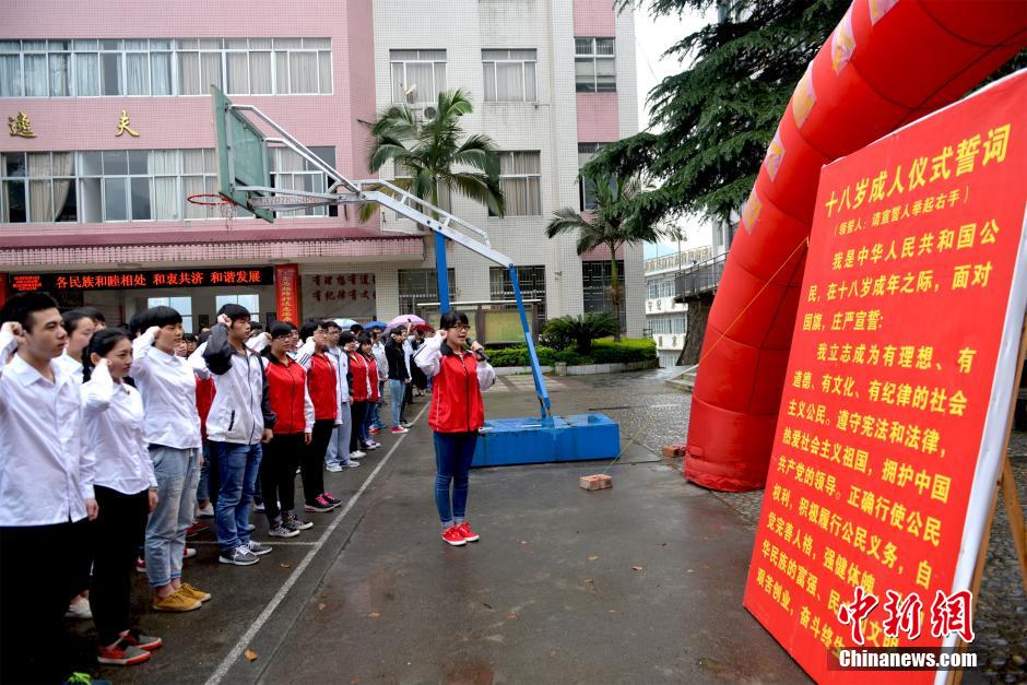 “五四”青年节当天,广西龙胜各族自治县龙胜中学举行“迈入成年门,走好青春路”十八岁成人宣誓仪式,600多名成年学生庄严宣誓,承诺时刻牢记责任和义务,自觉践行社会主义核心价值观,立志做“有理想、敢担当、懂感恩”的时代新青年。 中新社发 潘志祥 摄