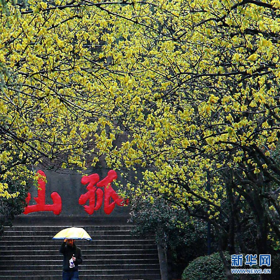在西湖边的中山公园内,一位游客走出孤山景区(2010年4月14日摄)。新华社记者 王颂 摄
