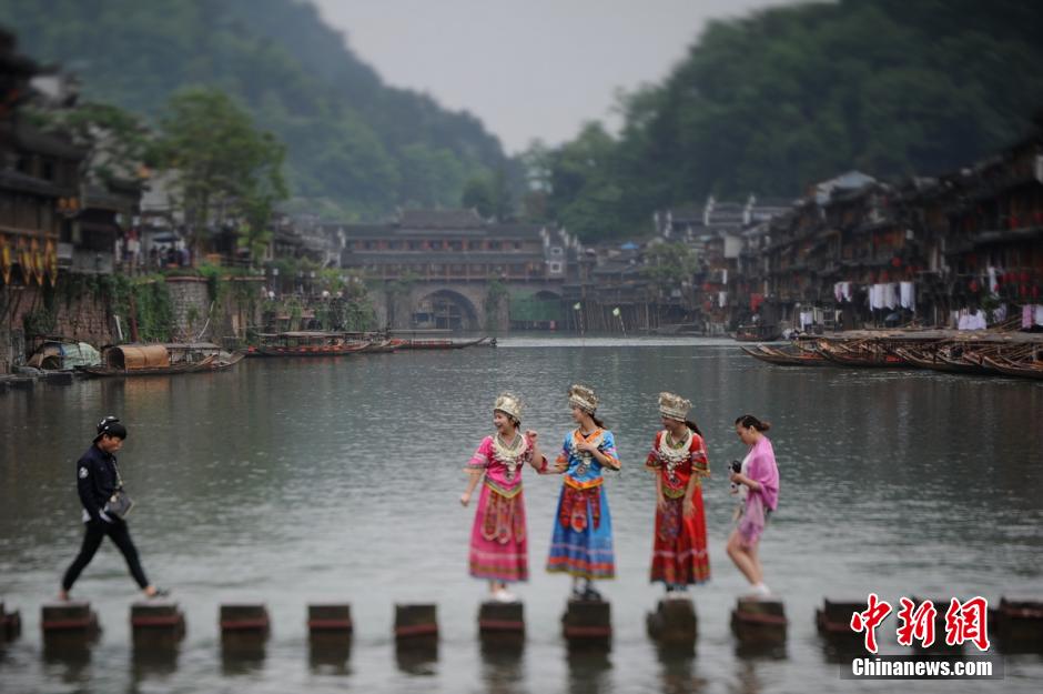 湖南凤凰古城烟雨朦胧 游客不忍离去