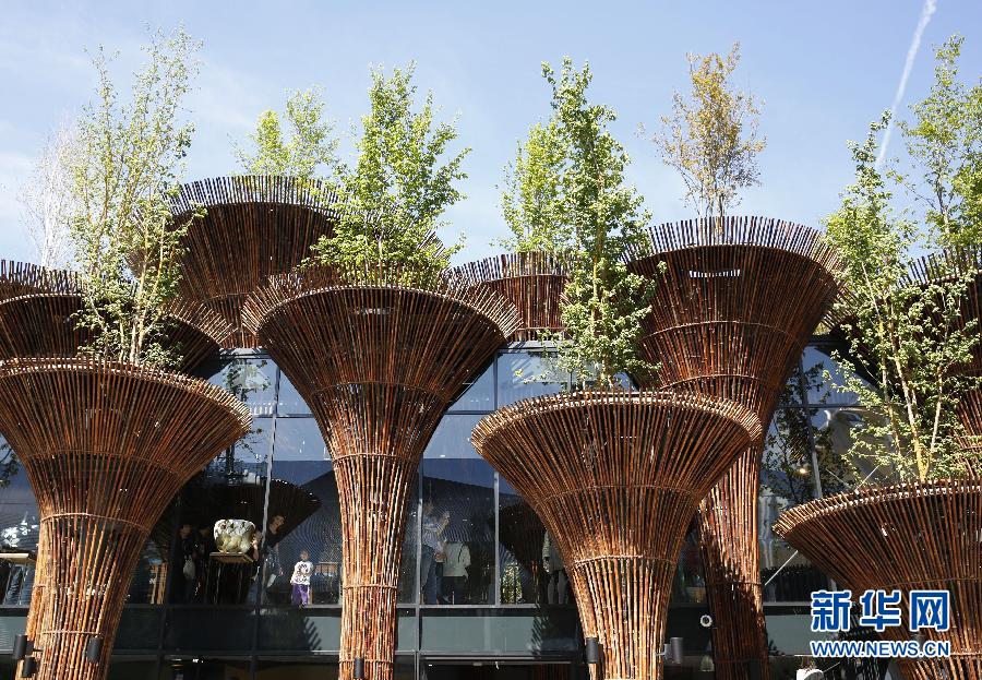 这是5月2日在意大利米兰世博会上拍摄的越南馆竹制外墙装饰。 5月1日开幕的米兰世博会以“滋养地球,生命能源”为主题,关注全球粮食安全和可持续发展等问题。将可再生竹木材料运用到场馆建设中成为本届世博会的新风尚。新华社记者叶平凡摄