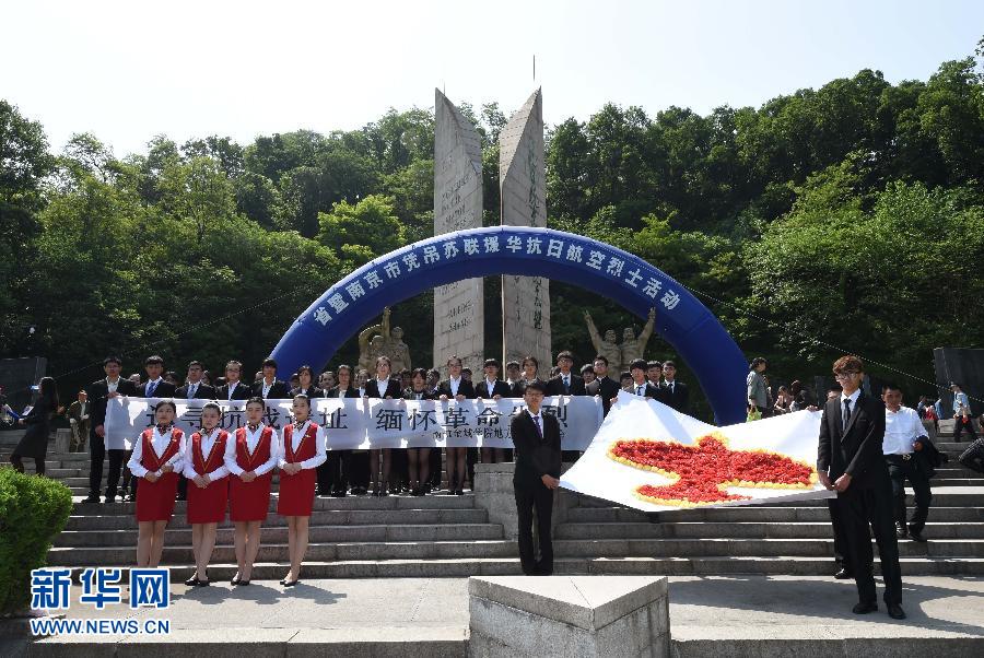 5月5日,大学生们在抗日航空烈士纪念碑前合影。当日,江苏省暨南京市各界人士在南京抗日航空烈士纪念碑前举行凭吊苏联援华抗日航空烈士活动,追思为中国抗战事业献出生命的200余名苏联援华志愿航空队飞行员。抗战初期,苏联是率先援助中国抗日的国家。共计有1000多架飞机、2000余名飞行员与中国人民一起抗击日本侵略者,超过200名苏联飞行员血洒中国长空。新华社记者 孙参 摄