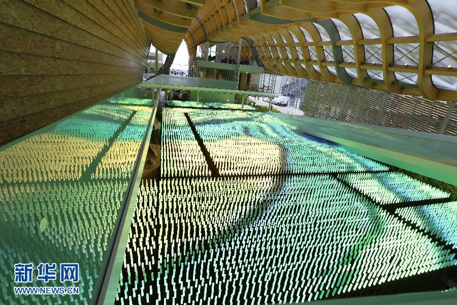 这是4月29日在意大利米兰世博会中国馆拍摄的LED灯“麦穗”。中国馆内的“回望田野”部分由2万根顶部为LED发光体的人工“麦穗”组成,构成巨大的具有立体感的动态田野画面,视觉冲击强烈。 5月1日开幕的2015年米兰世博会是继2010年上海世博会之后新一届注册类世博会,本届世博会的主题是“滋养地球,生命能源”,有140多个国家、地区和国际组织确认参展,预计观众达2000万人次。新华社记者叶平凡摄