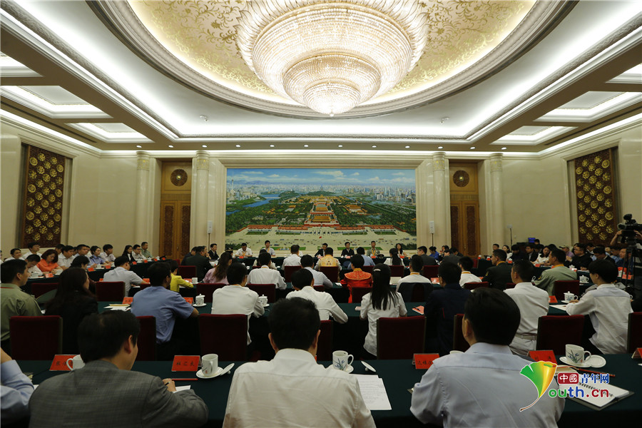 “传播青春正能量”优秀青年座谈会现场。 中国青年网记者 张炎良摄