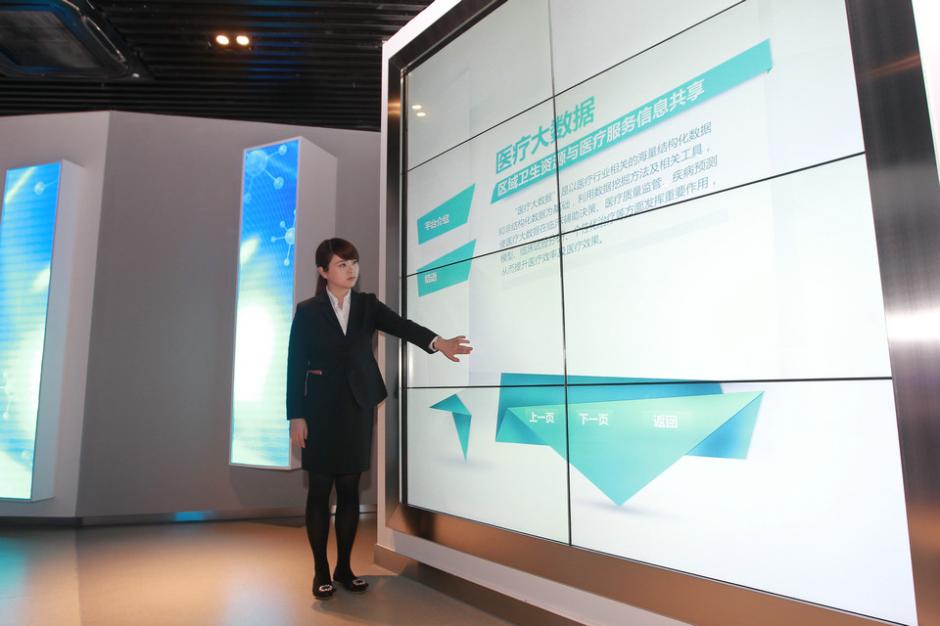 90后女孩林丹,从江苏南通职业大学毕业后,只身一人来到贵阳,通过测试当上了一名大数据展示中心的讲解员。图为林丹为前来感受大数据的读者介绍大数据。图片来源:央视网