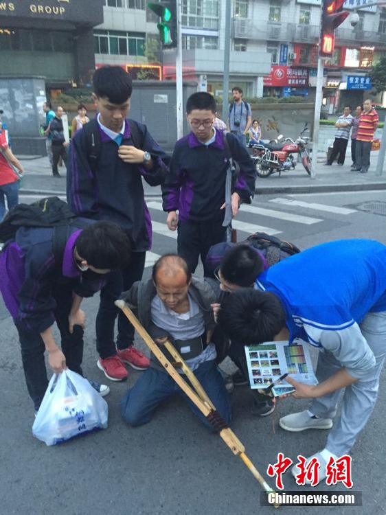 2015年5月6日消息,重庆一拐杖男子过马路时摔倒在马路正中央,5名中学生在车流中组成人墙保护直到医生赶到,过往的司机纷纷绕道避让。