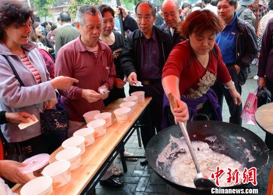 福州十几位烹饪鼎边厨师高手齐聚现场,为市民烹制各自拿手的鼎边作品,展现技艺,现场比拼,吸引众多市民冒雨观看、品尝。 刘可耕 摄
