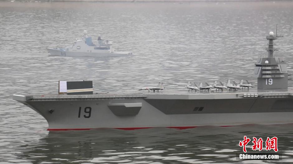 5月6日,河南周口沙颍河上演一场“航母海战”,号称国内最大的一艘航母模型“河南号”带领4艘驱逐舰参与“海战”演习。演习分红、蓝两方。经过近20分钟的激烈战斗,红方在航母的火力支援下,“舰艇”和“飞机”顺利登陆岛屿。这场在周口沙颍河上首次进行航模表演的“海战演习”活动吸引了众多市民围观。