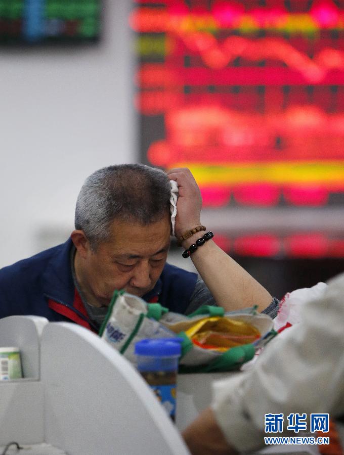 5月7日,股民在上海一家证券营业部内关注股市行情。当日,上证综指报收于4112.21点,跌幅为2.77%;深证成指报收于14114.73点,跌幅为0.15%。 新华社记者 丁汀 摄