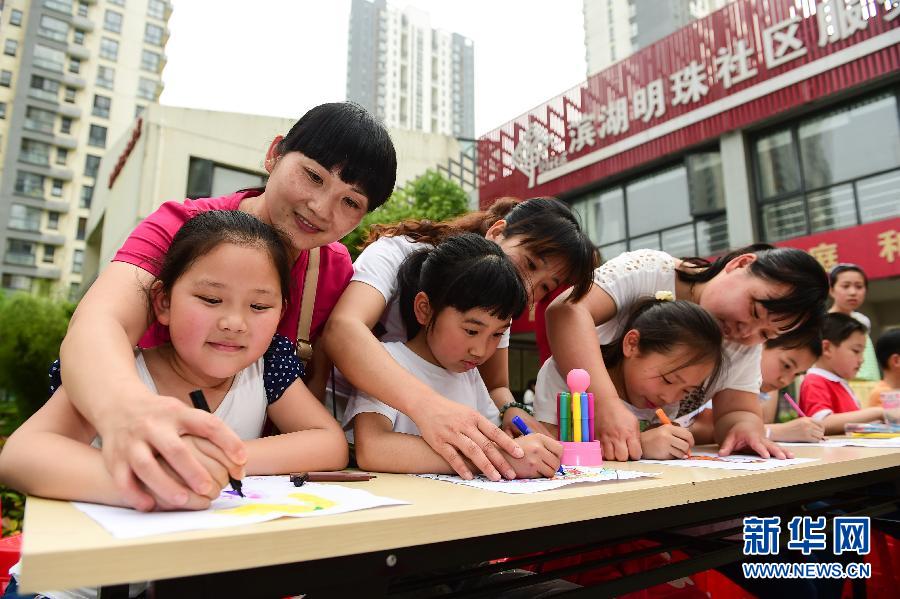 5月7日,在合肥市滨湖明珠社区举行的“五月花香感恩母亲节”主题活动中,孩子们在手绘自己心中母亲的形象。当日,安徽合肥市举办丰富多彩的活动,让孩子们感受母亲的艰辛,表达对母亲的感谢,迎接即将到来的母亲节。 新华社记者 杜宇 摄