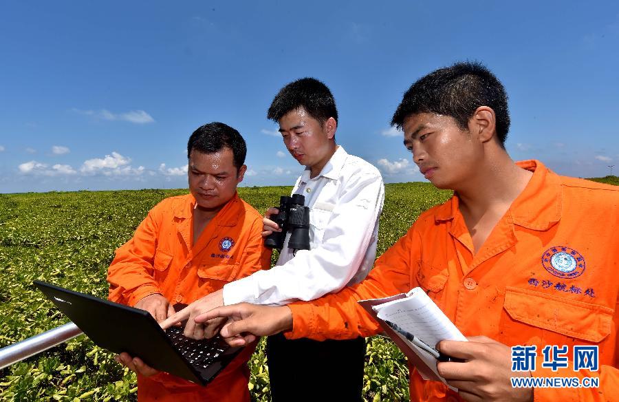 5月10日,“海巡171”船上的工作人员抵达西沙赵述岛,对附近通航条件进行观测。