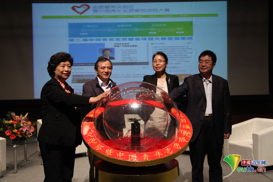 中国青年网北京5月8日电(记者 李拓 李延兵)5月8日下午,由共青团中央、民政部、中国残疾人联合会、中国志愿服务联合会、中共重庆市委及重庆市人民政府主办,中国青年志愿者协会、中国青年企业家协会、中央金融团工委、中央企业团工委、水利部新闻宣传中心、共青团重庆市委等联合承办的2015年志愿服务重庆交流会暨第二届中国青年志愿服务项目大赛启动仪式在北京举行。