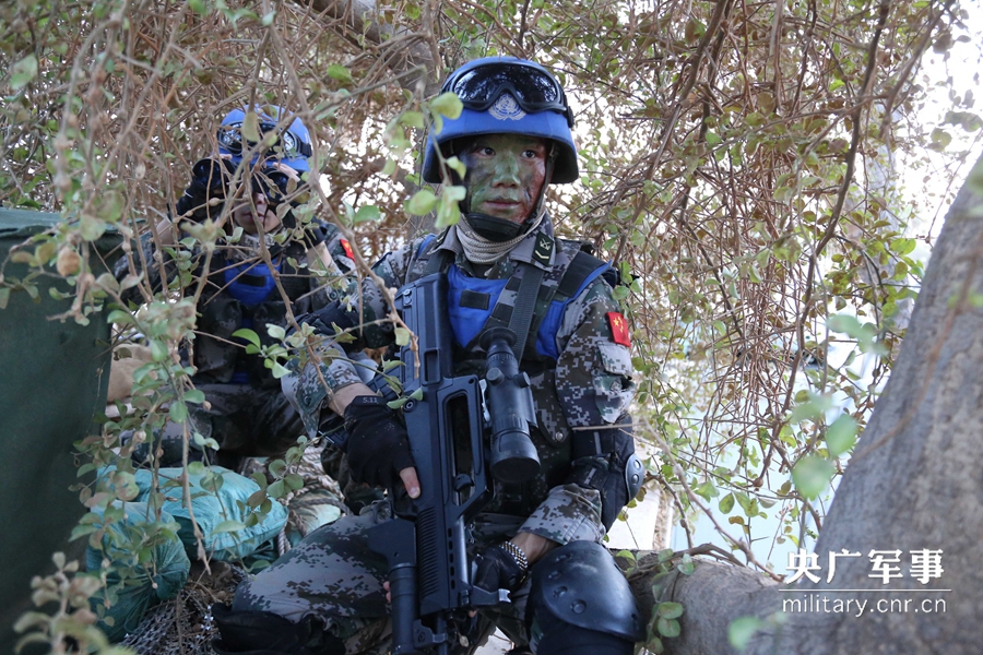 5月2日中国第二批赴马里维和部队警卫分队潜伏哨正在观察情况。