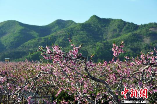 5月5日,辽宁丹东宽甸,4万亩桃花进入盛花期,吸引各地游客赏花留念。当天,辽宁丹东鸭绿江桃花观赏活动在这里拉开帷幕。据了解,被评为“中国十大最美乡村”的宽甸县河口村每年接待赏花游客超10万人次。孙昊声 摄