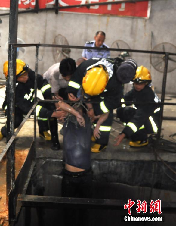 5月5日一名中毒工人被救出。当日下午16时46分,四川德阳什邡市工业园区沿山路8号一化工厂内发生一起泄漏事故,导致正在现场作业的2名工人中毒身亡,另有1人中毒。目前,中毒幸存的1名工人正在当地医院抢救,事故发生具体原因当地政府相关部门正在调查中。中新社发 钟欣 摄
