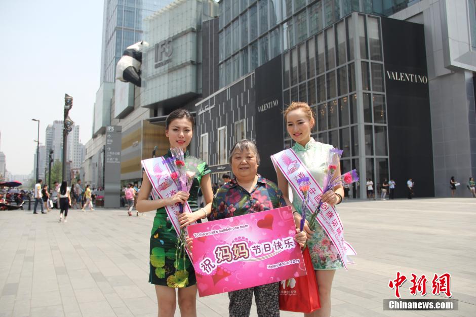 5月10日是母亲节,在中国首届空乘招募大赛上获得前十强的佳丽来到成都IFS广场、远洋太古里,向过往的民众发送康乃馨,祝福全天下的母亲,母亲节快乐!祝天下母亲节日快乐!钟欣 摄