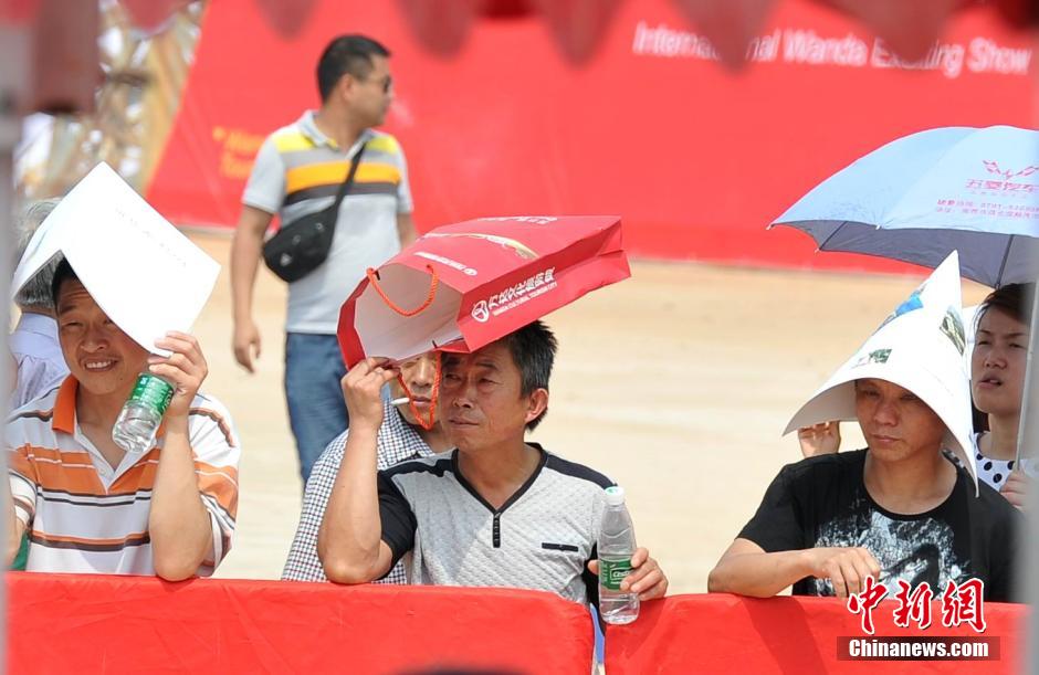 5月10日上午,中国大陆男演员冯绍峰亮相江西南昌万达城,吸引了众多观众前来追星。当日,南昌最高气温达30℃,现场守候多时的观众不顾烈日当空,利用现场的宣传纸张折叠成造型百态的“帽子”防嗮。刘占昆 摄