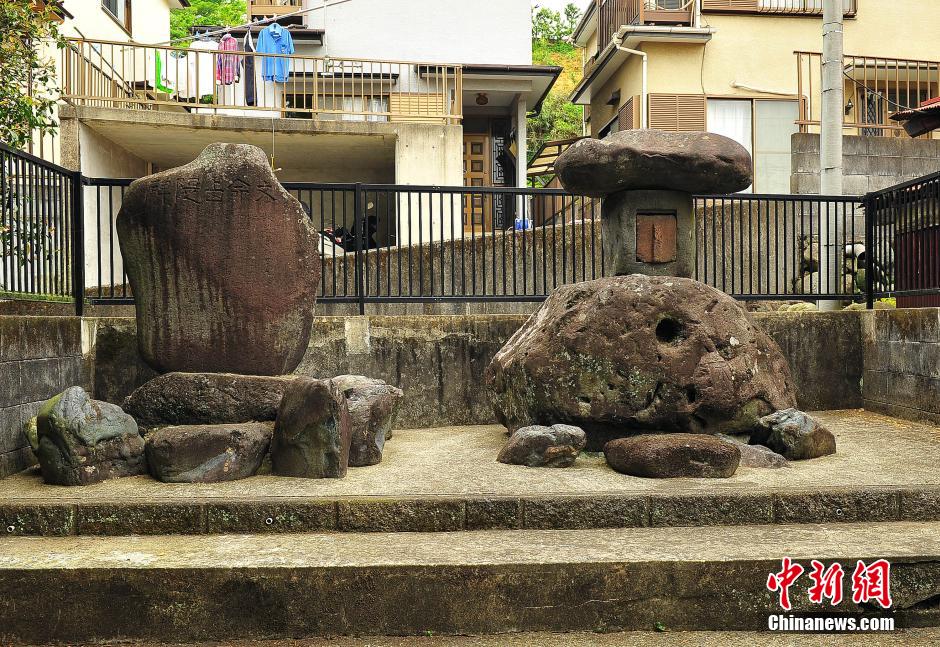 5月9日至10日在日本富士山麓小镇开成町举行的“东亚文化交涉学会”年会上,专辟“治水之神大禹与地域间文化交流”主题。在这一带的酒匂川流域,至今留存不少有关大禹文化的遗迹。图为当地“文命堤”西堤留存的石质供奉物(据《史记》记载,文命为大禹的本名)。王健 摄