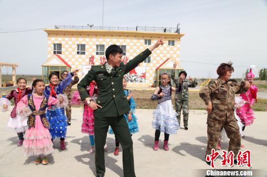 边防官兵在和戍边母亲、小朋友们在边境线上跳起了“小苹果”。李君蕾 摄