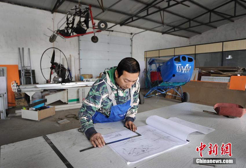 5月10日,在长春远郊的一处空地上,45岁的长春市民杨世军独自驾驶着自己制造的超轻型飞机完成了200米高度以内的低空盘旋飞行。此前,杨世军与自己制造的这架飞机曾试飞2次,完成了10日的飞行后,他实现了总计留空2.5小时、起落10次的成绩。杨世军表示,目前他和朋友们正在积极制造另外3架双座飞机,以感受更多的飞行乐趣。张瑶 摄