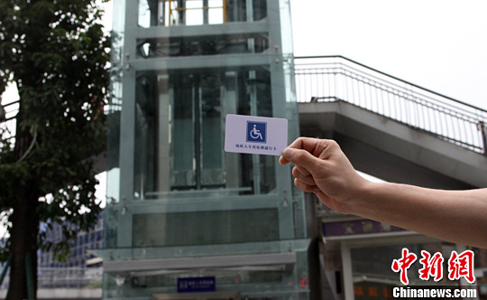 为方便残疾人和行动不便的老年人过往人行天桥,5月10日,位于绵阳市城区新益大厦、花园小区、三医院共8部人行天桥残疾人专用电梯正式启用。残疾人专用电梯采用刷卡进入的方式,每日7:00—22:00开放。残疾人或其亲属可持残疾人证或残疾人本人持身份证可在每部电梯口设置的残疾人专用电梯通行卡发放点免费领取通行卡。