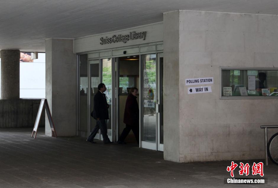 5月7日,英国举行大选,650个选区的选民前往投票站,选出代表各自选区的国会议员,赢得全国超过半数选区议席(即超过325个席位)的政党,则获得执政权。图为两名选民走进投票站投票。 中新社发 周兆军 摄