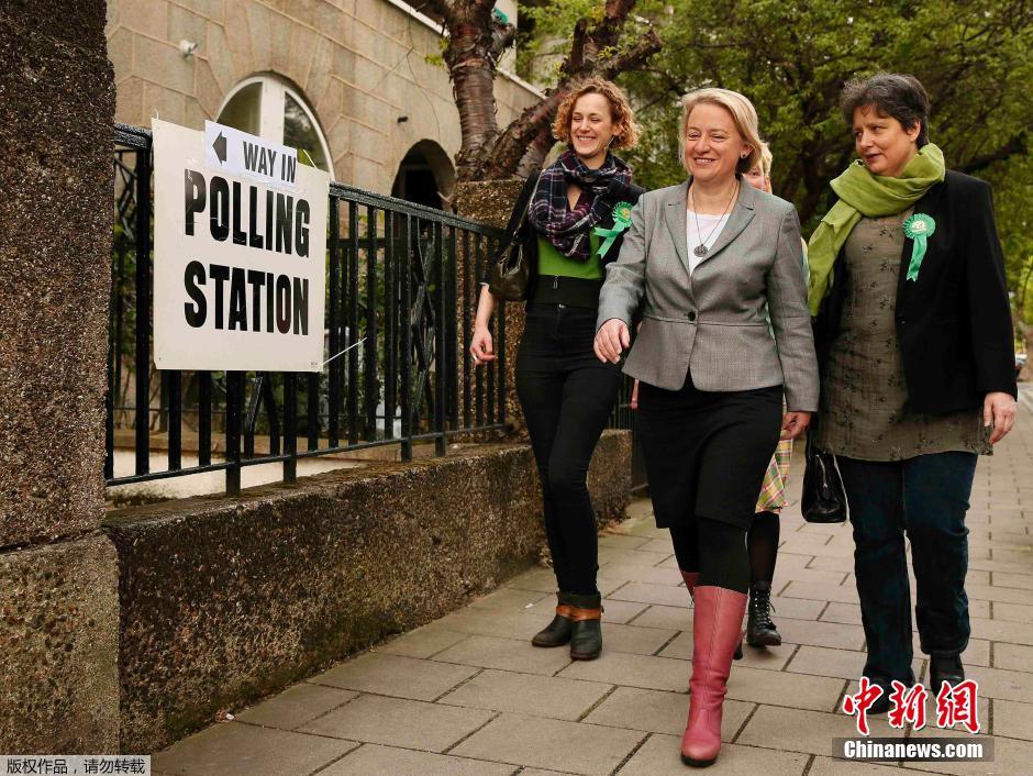 2015年英国大选投票已经于当地时间5月7日早7点(北京时间7日下午14时)开始。选民将在首相卡梅伦领导的保守党、米利班德领导的工党及其他一些小党中做出抉择,投票结果将于8日出炉。图为英国绿党领导人娜塔莉·班尼特前往投票站投票。