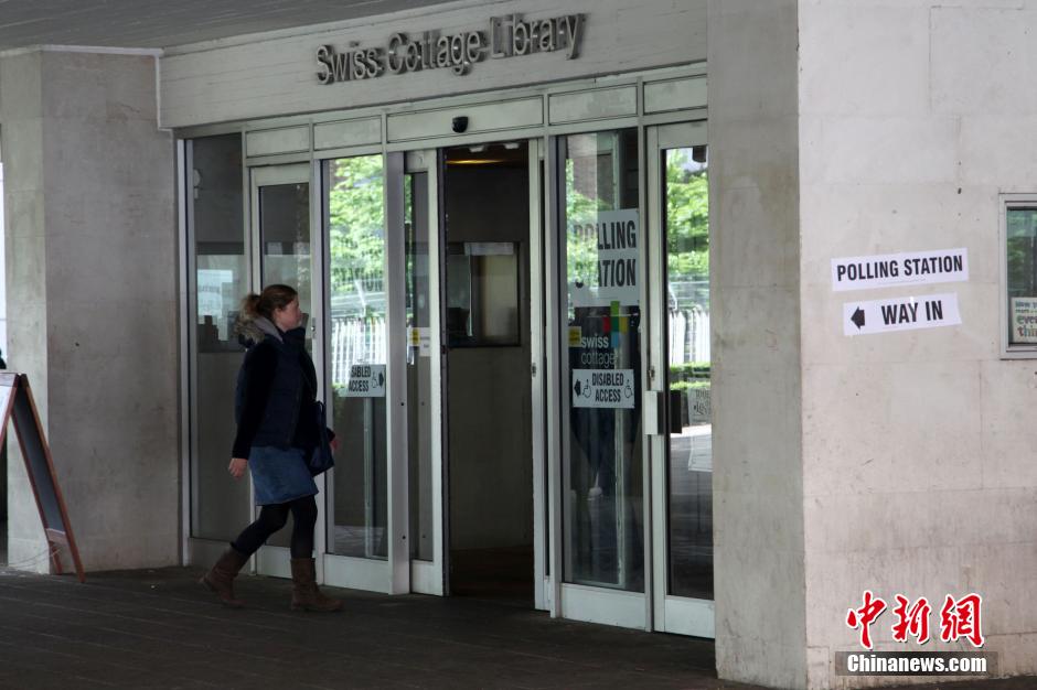 5月7日,英国举行大选,650个选区的选民前往投票站,选出代表各自选区的国会议员,赢得全国超过半数选区议席(即超过325个席位)的政党,则获得执政权。图为一名选民进入投票站投票。中新社发 周兆军 摄