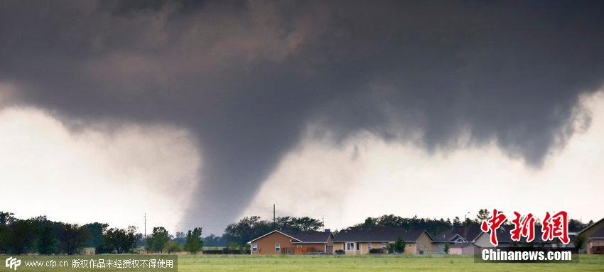当地时间2015年5月6日,美国堪萨斯州Halstead遭遇龙卷风袭击,场面十分震撼。图片来源:CFP视觉中国