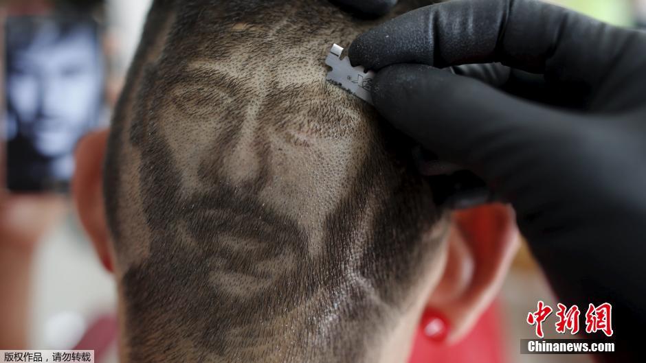 5月6日,巴西圣保罗,27岁的发型师Nariko在一名男性顾客的头上创作了内马尔肖像发型,惟妙惟肖引围观。