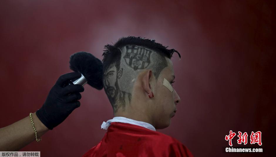 5月6日,巴西圣保罗,27岁的发型师Nariko在一名男性顾客的头上创作了内马尔肖像发型,惟妙惟肖引围观。