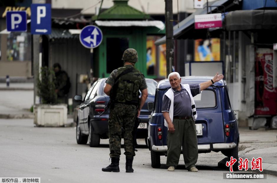 图为一个哨卡处,一位当地的老人跟巡逻的警察交谈。
