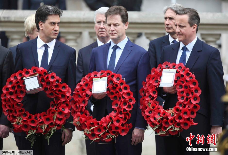 当地时间2015年5月8日,英国伦敦,英国在伦敦和平纪念碑前举行仪式,纪念胜利日70周年。