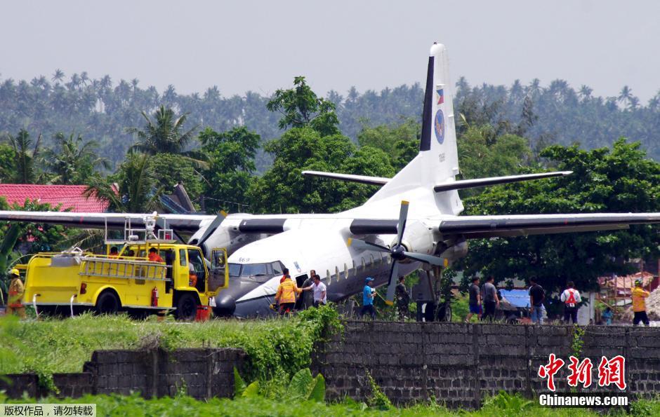 当地时间2015年5月11日,菲律宾黎牙实比,菲律宾空军福克F27飞机在机场跑道上俯冲。此次事故前起落架故障引起,无人员受伤,但造成机场数航班延迟。