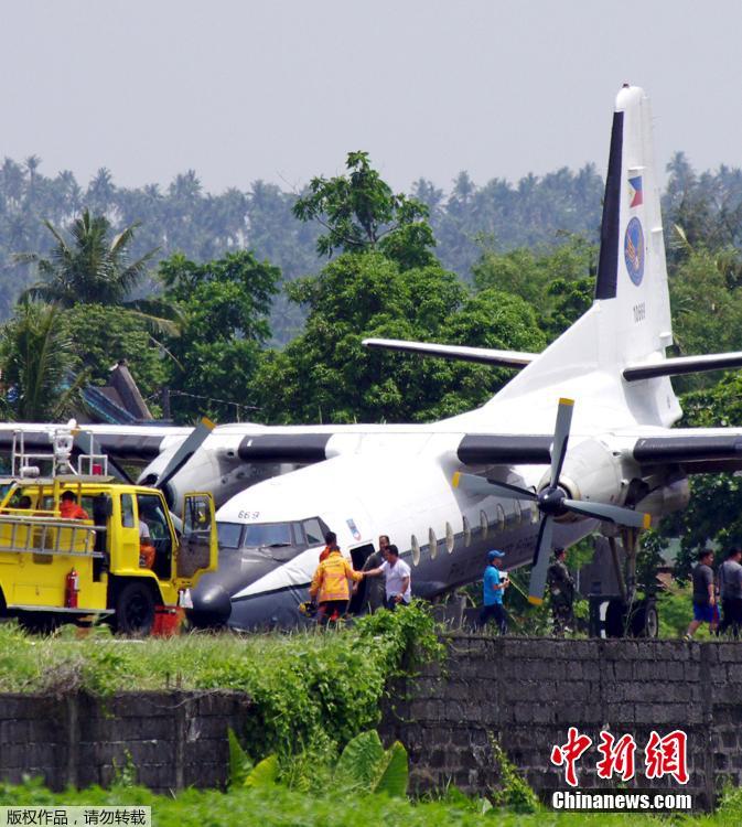 当地时间2015年5月11日,菲律宾黎牙实比,菲律宾空军福克F27飞机在机场跑道上俯冲。此次事故前起落架故障引起,无人员受伤,但造成机场数航班延迟。