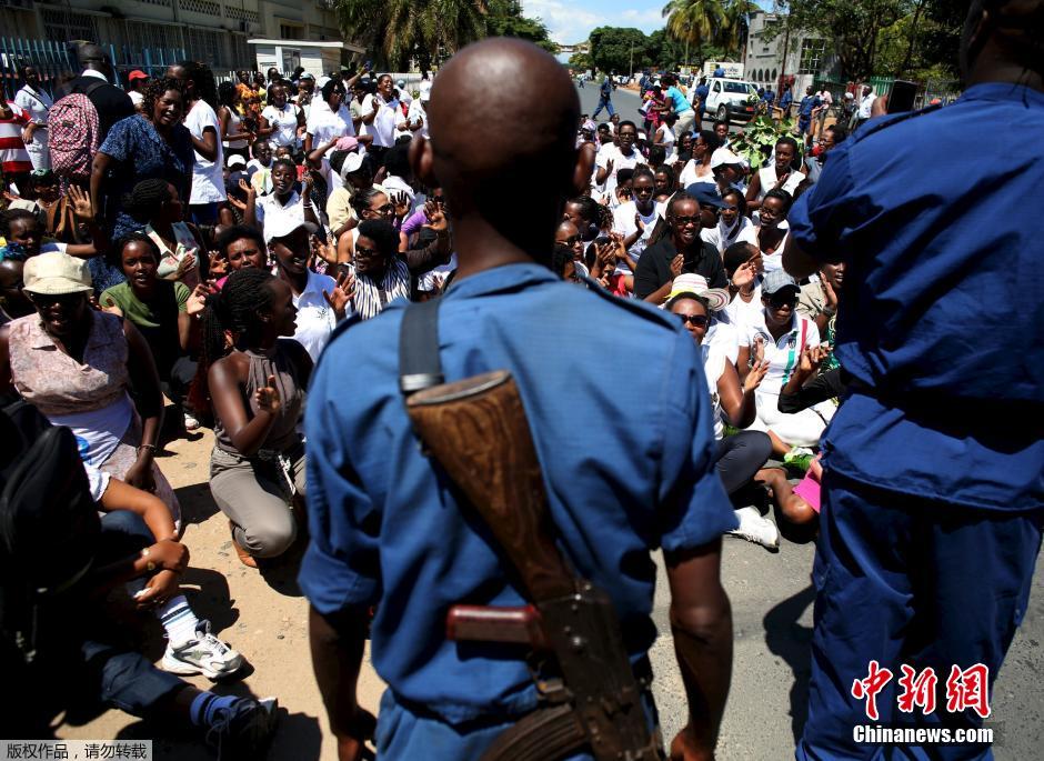 图为当地时间5月10日,布隆迪首都布琼布拉,当地妇女组成抗议团体,反对现任总统皮埃尔·恩库伦齐扎参加下一届总统选举。