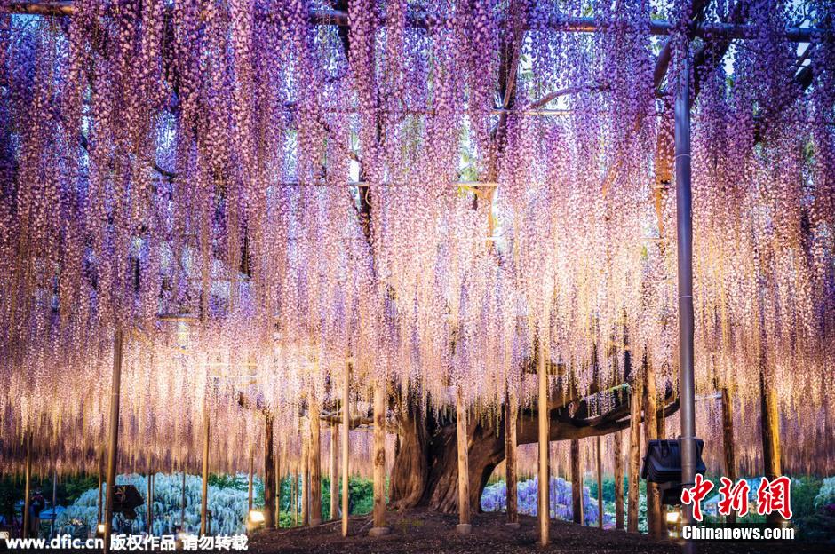 2015年5月12日消息,日本一株144岁的紫藤树简直就是现实版《阿凡达》电影中的“灵魂树”。高15英尺,占地1672平方米,在金属支架的支撑下,犹如紫色瀑布一般,如梦如幻。